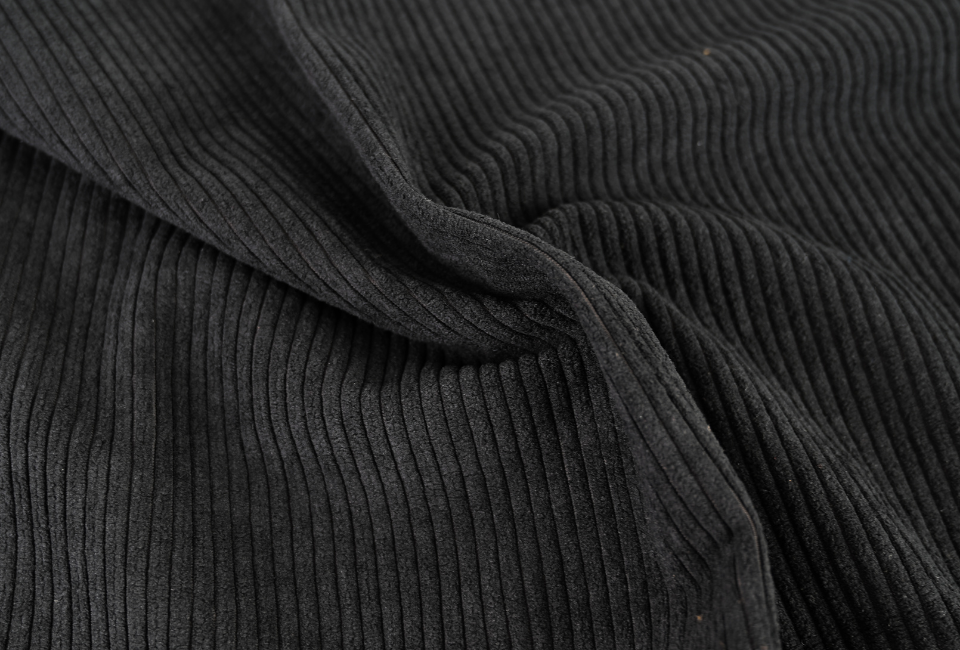 Wide corduroy reveals its full personality in this XXL version of the classic ribs. These pronounced lines create a unique sculptural relief that captures the light with intensity, giving black an exceptional depth and character.