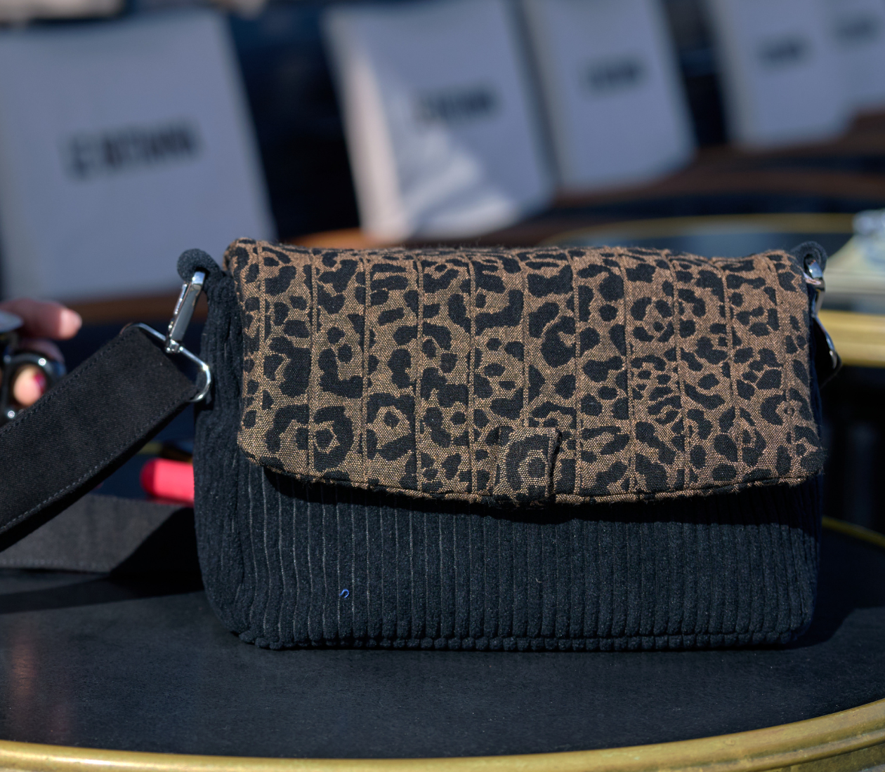 Embrace ultimate chic with our exclusive wide-ribbed black corduroy collection, an iconic fabric that reveals all its modernity in this timeless shade. This deep black, enhanced by the generous ribs of the corduroy, creates a striking graphic effect that gives your accessories a naturally elegant structure.