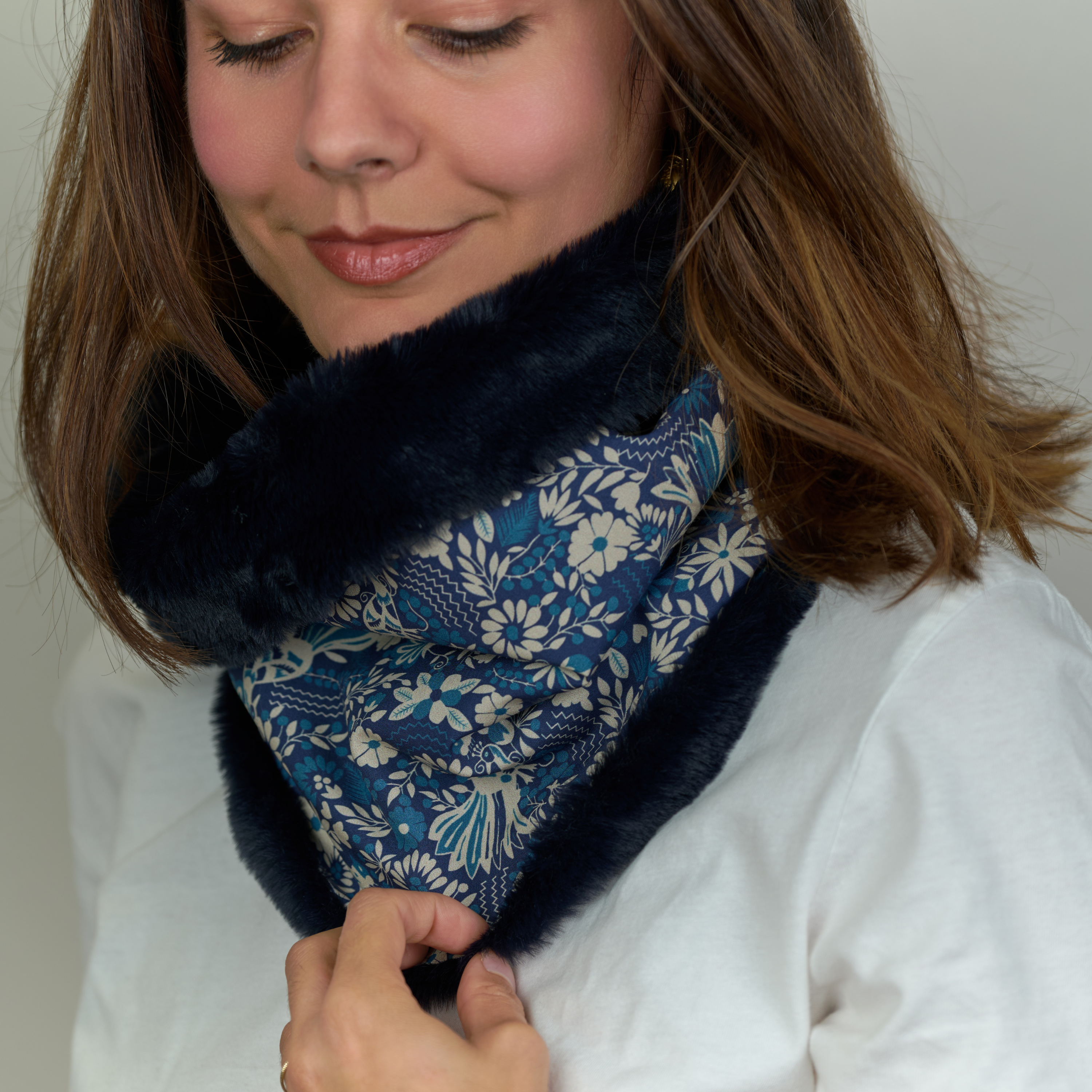 Pour conserver la douceur de la fausse fourrure polaire pendant de nombreux hivers, nous vous conseillons de passer votre snood en machine à laver à 30° sans adoucissant , et d'essorer à 800 tr/min, ainsi le tissu coton et la matière polaire seront préservés.