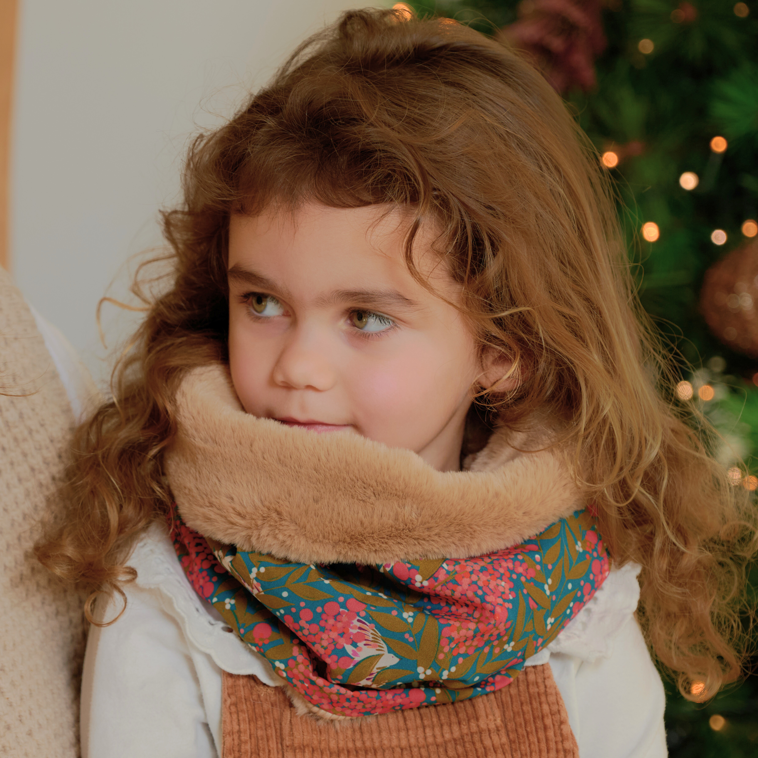 The fabric and faux fur choker is the solution if your child forgets or often loses his classic scarf when he takes it off during his activities. Convenient and space saving, your child will not need to remove his polar snood which will stay in place without getting in the way and without slipping.