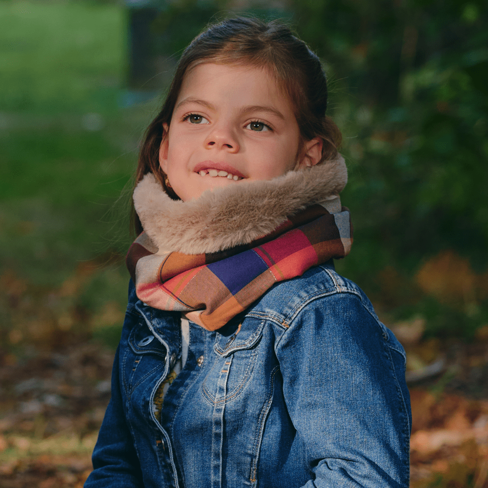 The fabric and faux fur choker is the solution if your child forgets or often loses his classic scarf when he takes it off during his activities. Convenient and space saving, your child will not need to remove his polar snood which will stay in place without getting in the way and without slipping.