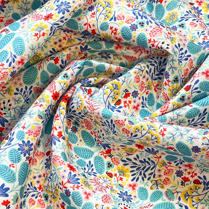 Fall for this cotton poplin that is soft to the touch and has good hold. Its pattern with rich details and vibrant colors will add delicacy to all your creations. Ideal for children's or adult clothing such as blouses, tops, skirts, dresses or hair accessories such as scrunchies, headbands, clutches, etc.