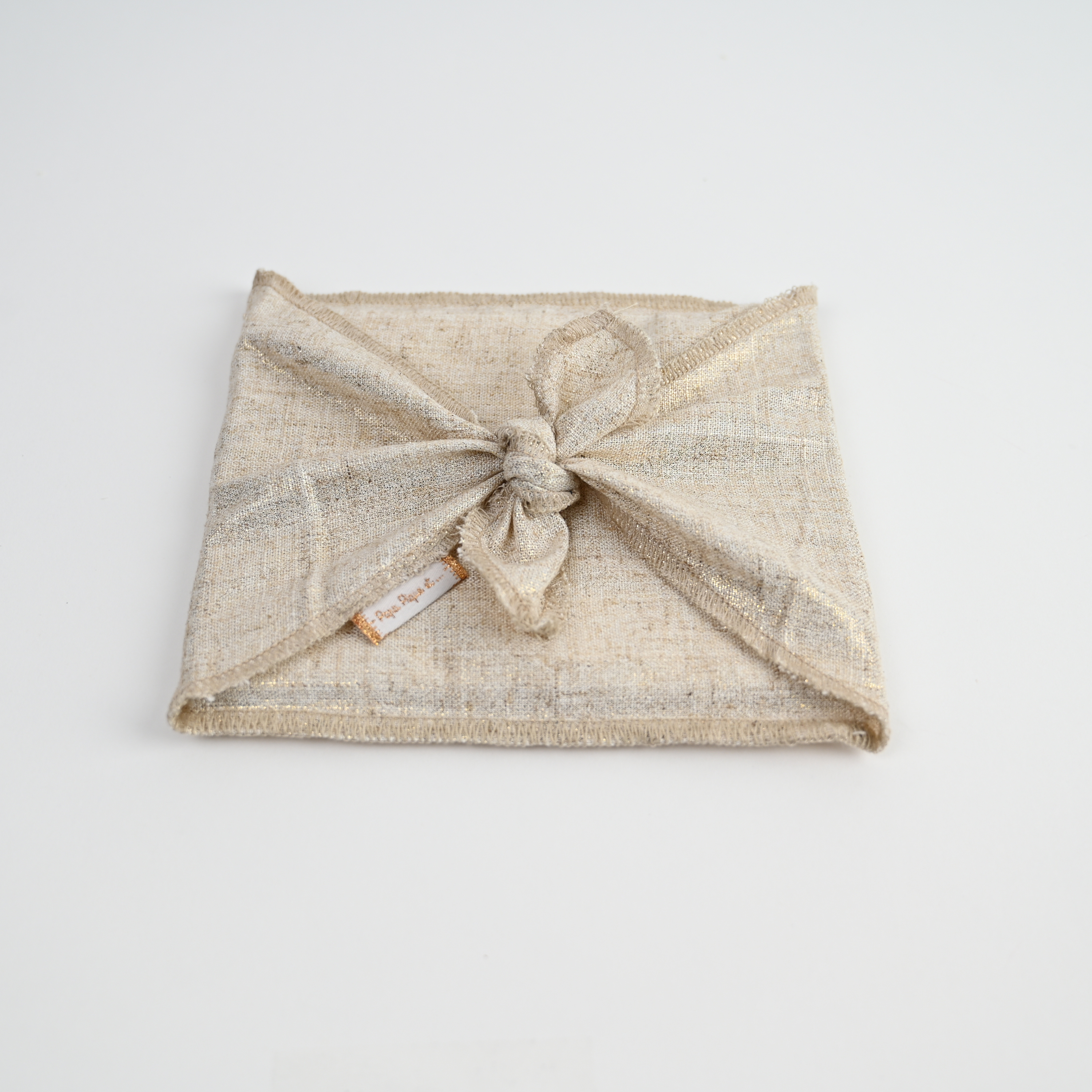 This small tie-up fabric pouch (14 x 17 cm) was designed as an aesthetic and eco-friendly alternative to single-use gift wrap. Made of cotton, it combines practicality, durability, and elegance while showcasing your thoughtful presents.