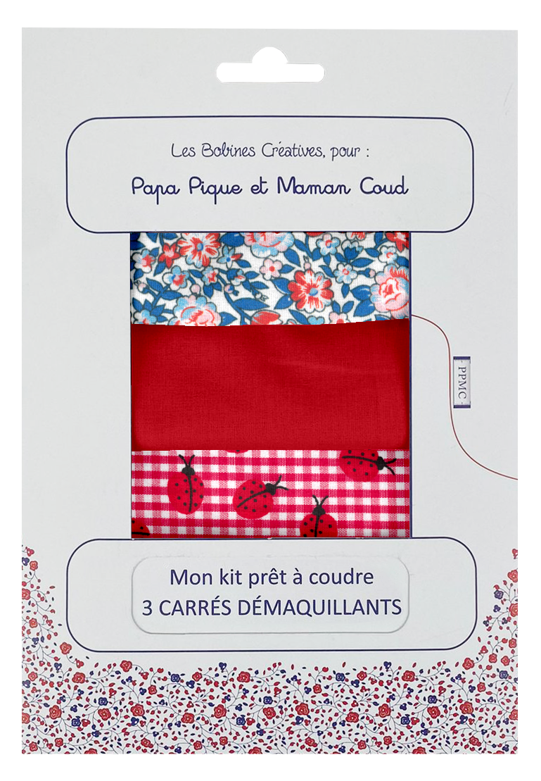 Thanks to this sewing kit, you will be able to make your own cotton makeup remover squares in 3 PPMC prints. We offer you in this kit ready to sew pieces of fabric (cotton and sponge) already cut to the right size; as well as the photo tuto detailing each step.