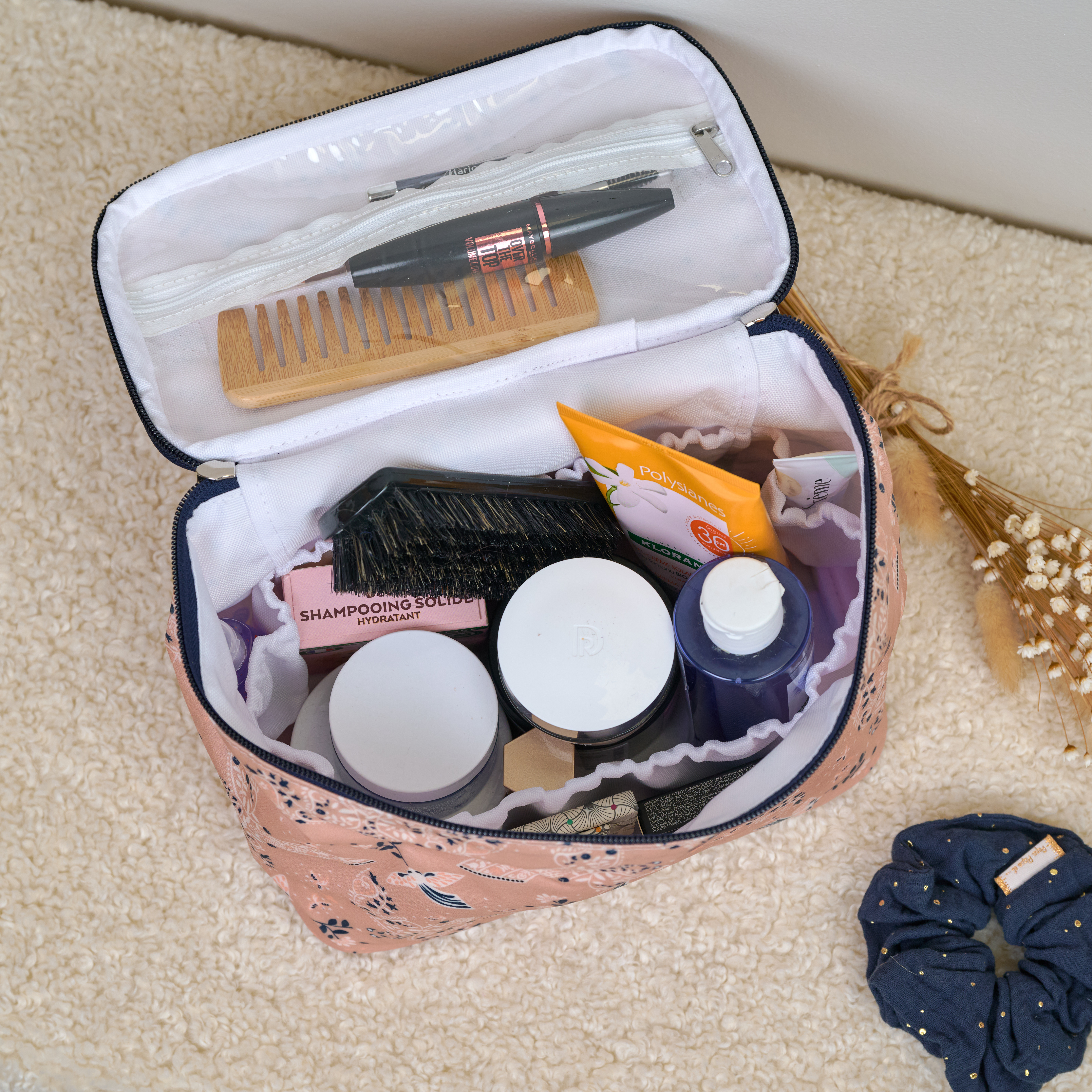 A stain of foundation or pencil or small dirt slipped into the folds of your Vanity? Don't panic, with a damp sponge, you can clean it. Made of coated cotton, it is machine washable at 30°C. We do not recommend tumble drying, as the heat will damage the fabric, but also the size of this Vanity. We also recommend avoiding ironing and bleaching to avoid altering the characteristics of the basic product.