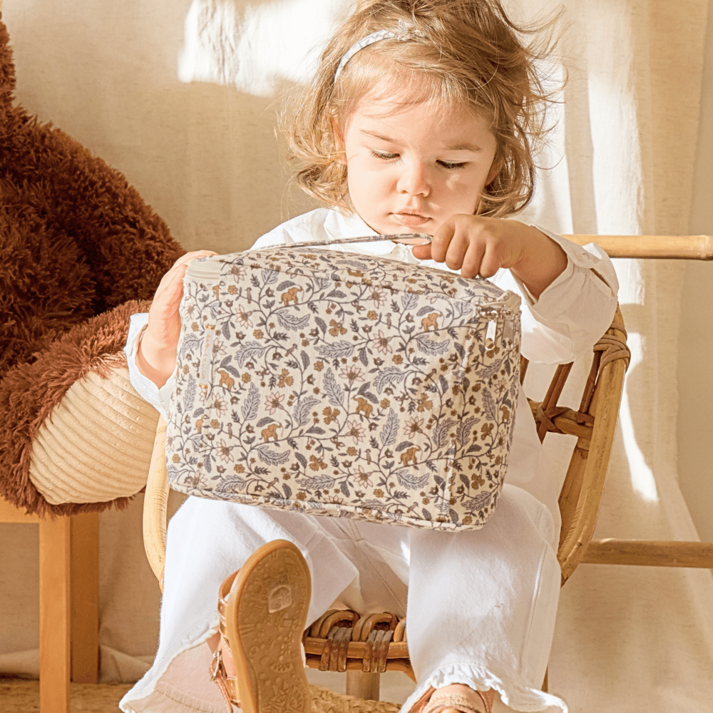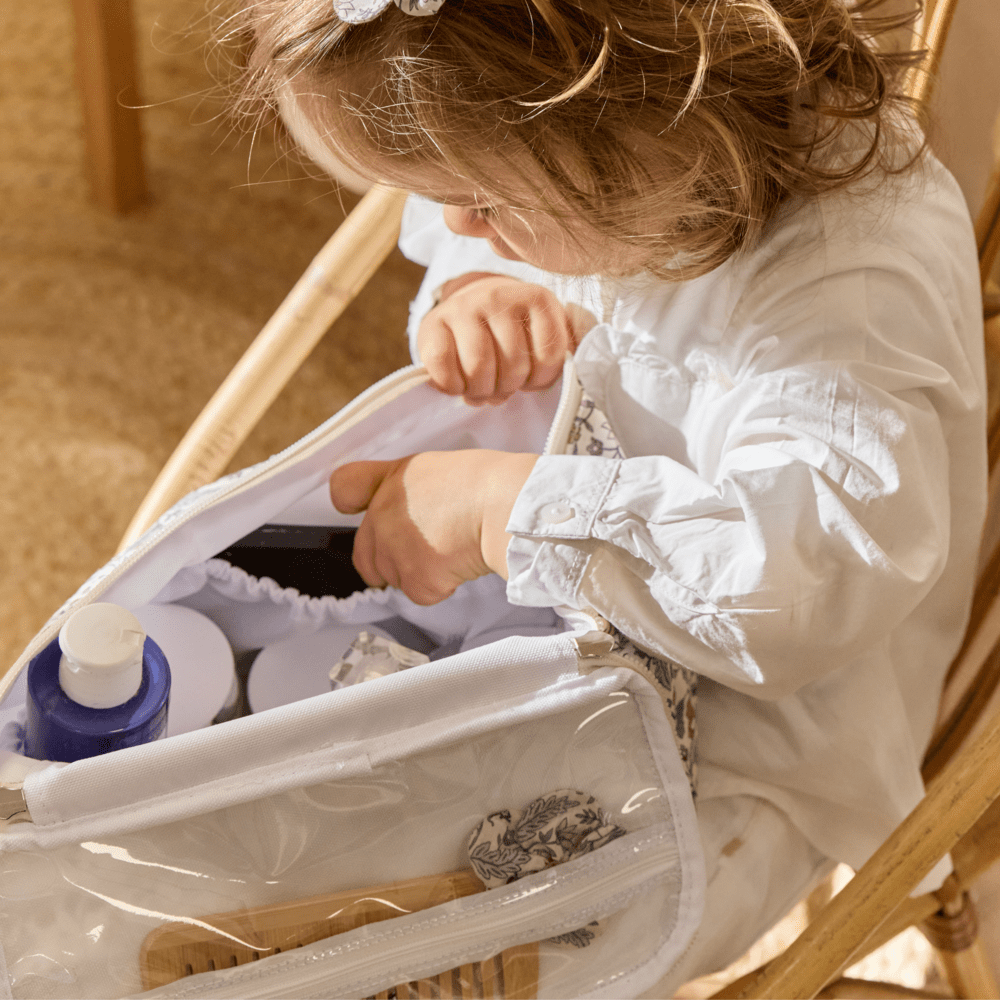 A stain of foundation or pencil or small dirt slipped into the folds of your Vanity? Don't panic, with a damp sponge, you can clean it. Made of coated cotton, it is machine washable at 30°C. We do not recommend tumble drying, as the heat will damage the fabric, but also the size of this Vanity. We also recommend avoiding ironing and bleaching to avoid altering the characteristics of the basic product.