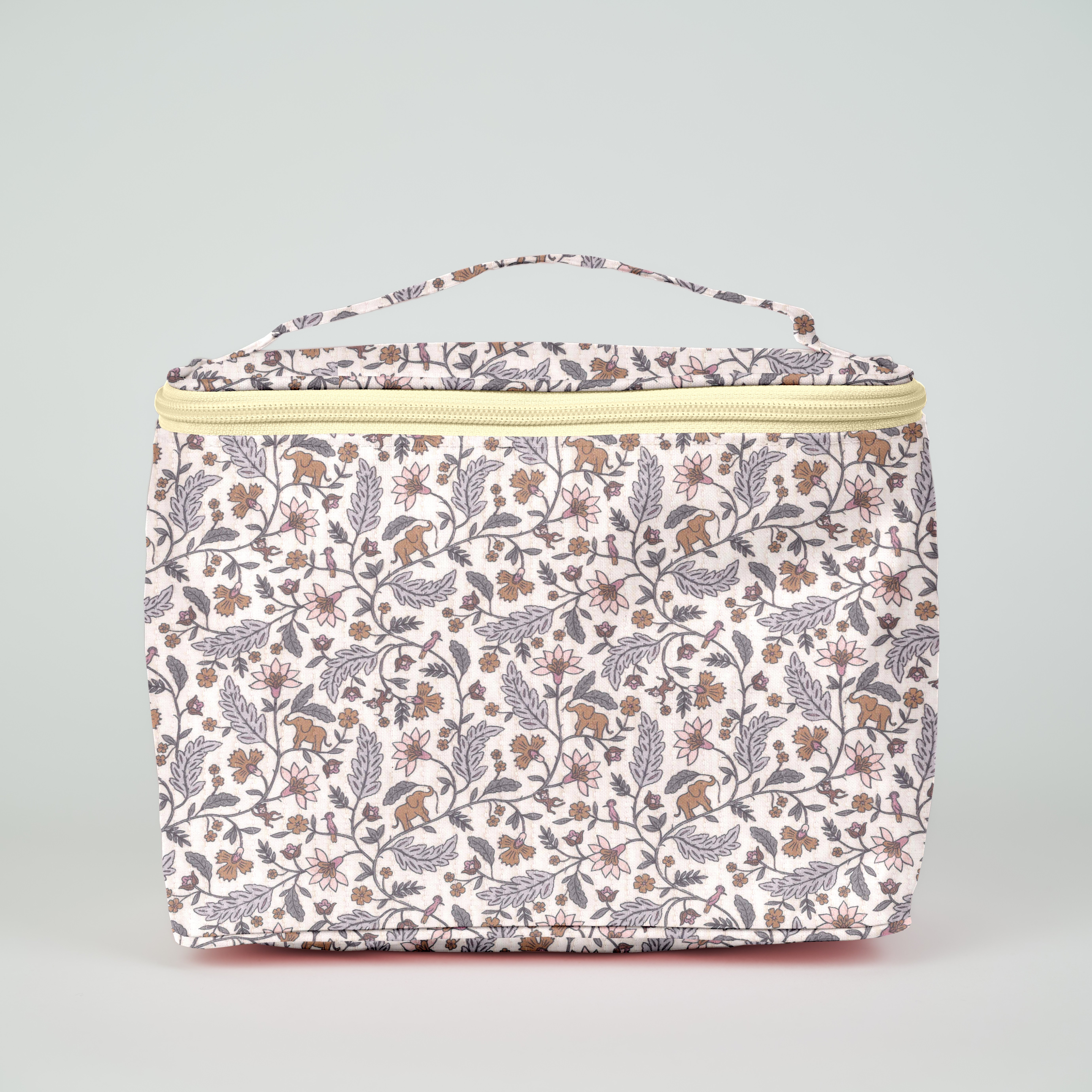 This coated cotton vanity case is spacious enough for a weekend or longer vacation.