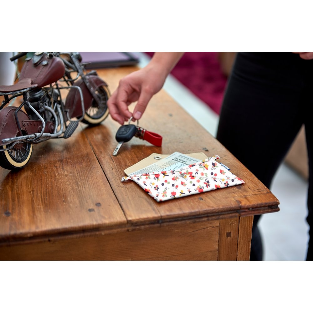 This small envelope-shaped pouch will allow you to slip your official papers (passport, ID, car registration, driver's license...) but also your small girly effects (tissues, wipes, towels...).