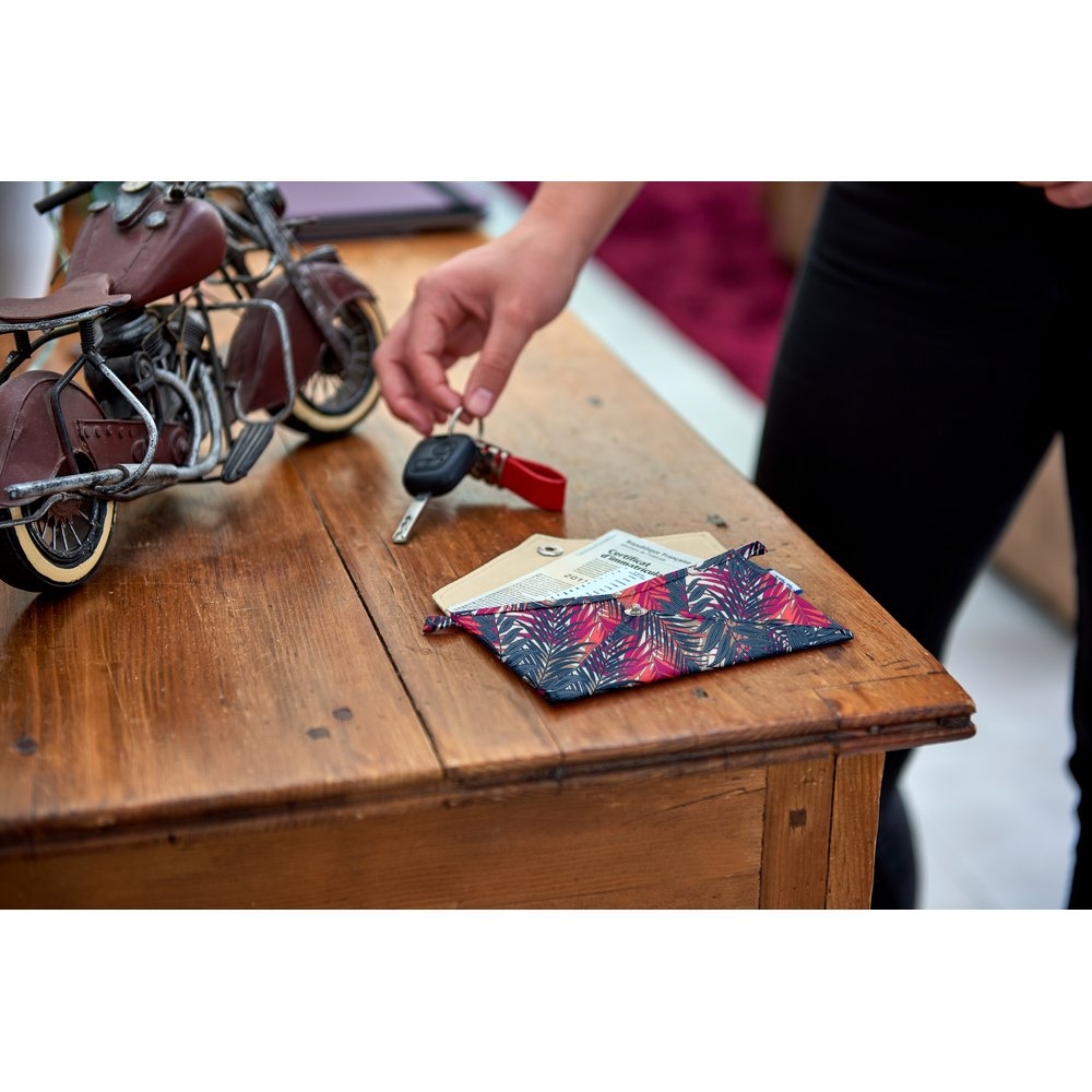 This small envelope-shaped pouch will allow you to slip your official papers (passport, ID, car registration, driver's license...) but also your small girly effects (tissues, wipes, towels...).