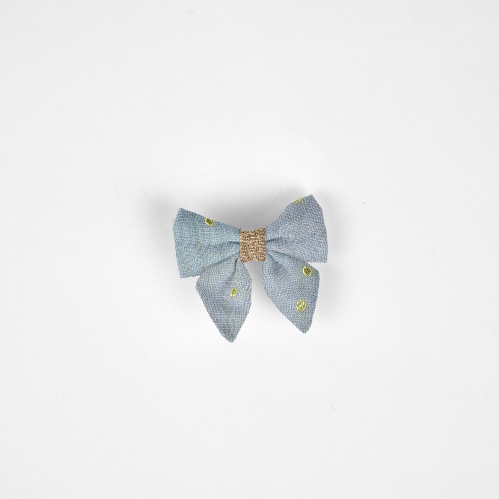 Mini Bow Tie Clip Gaze Pois Or Bleu Baltique