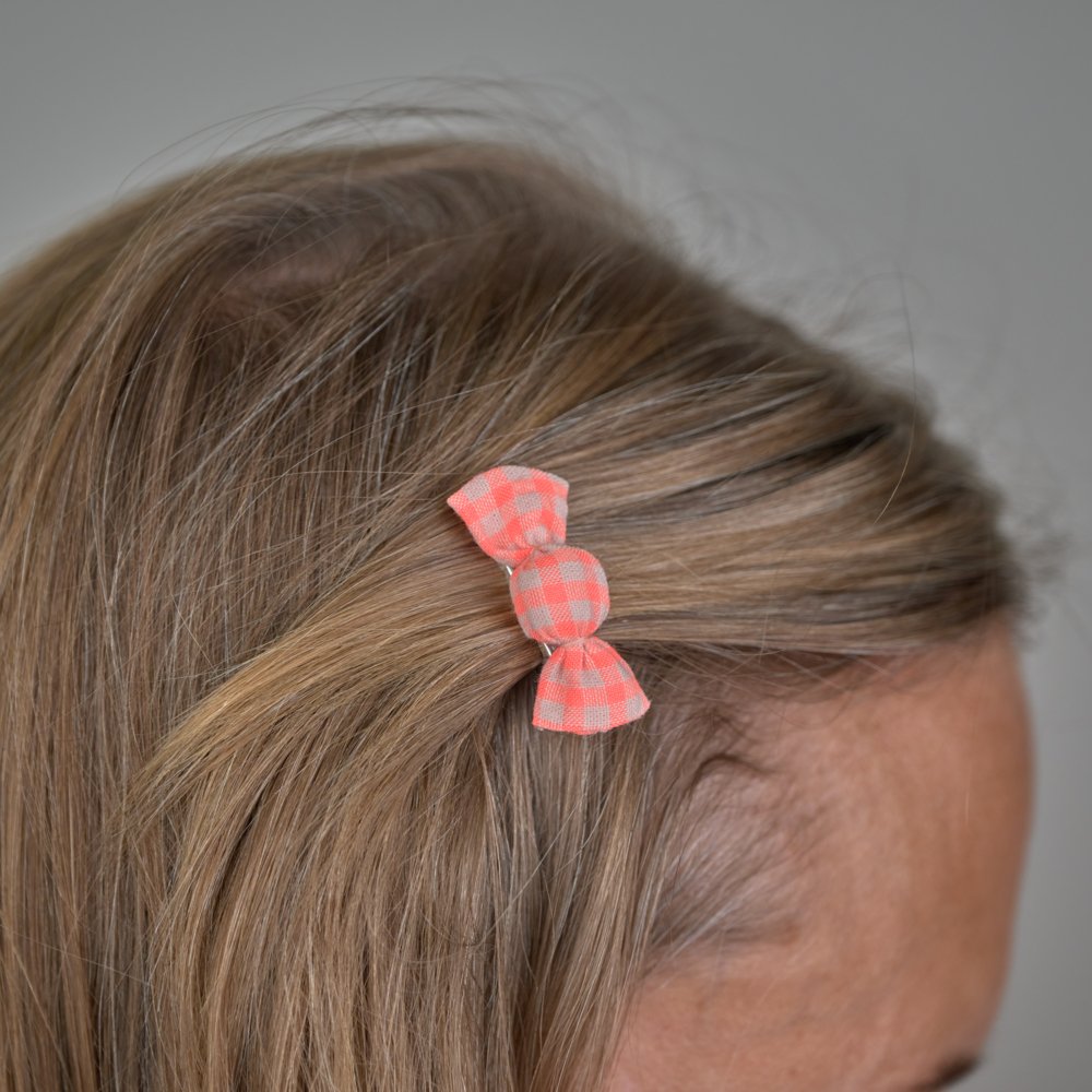 Mini Sweet Hairslide Neon Orange Gingham