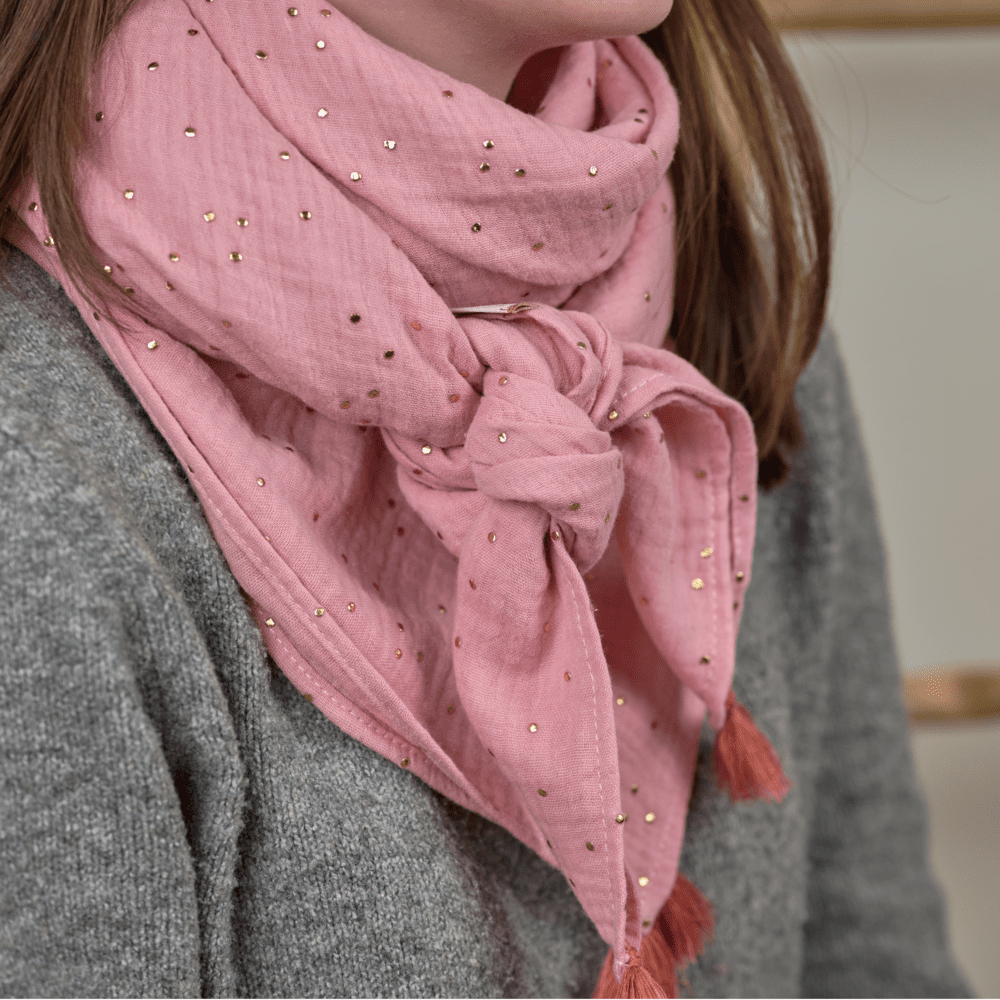 Pom Pom Scarf Gaze Pois Or Rose Thé