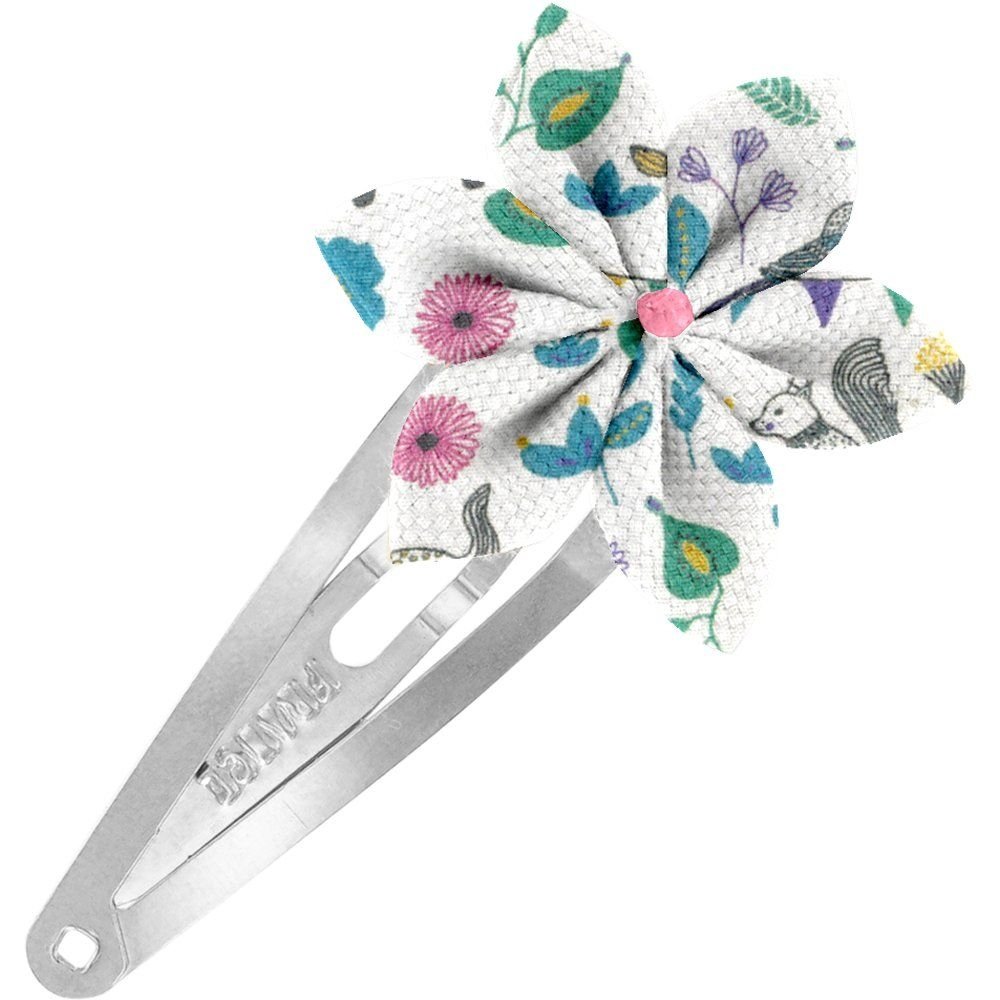 Pretty flowers sewn onto click-clack frames, ideal for little kids' hair and for older kids.