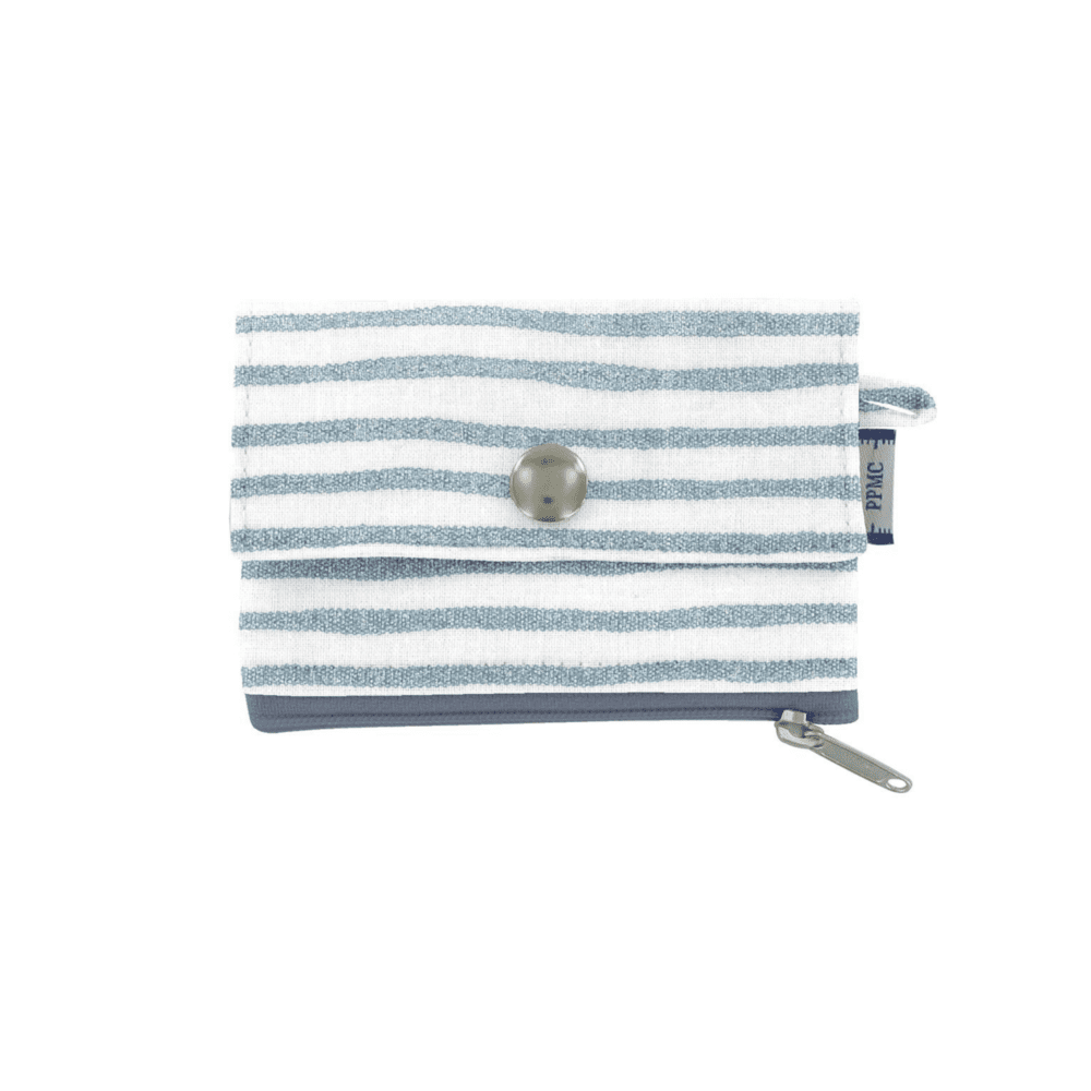 Zipper Pouch Card Purse Striped Blue Gray Glitter
